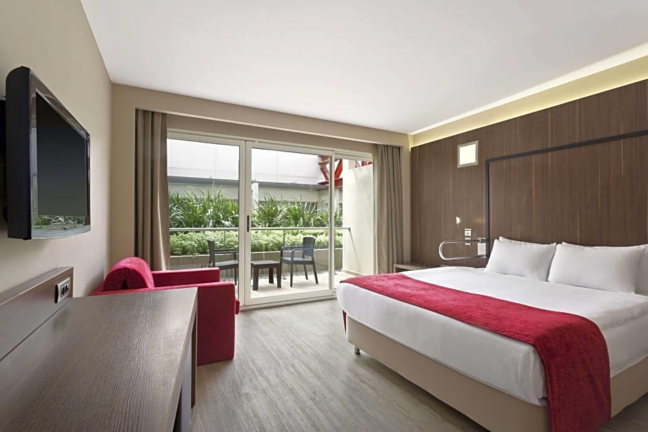 Business room with land view is 248 square feet and includes a king-size bed 150-183 width plus balcony, extra beds on demand, hairdryer, tea and coffee making facilities , and safe and has a Disability-friendly bathroom.