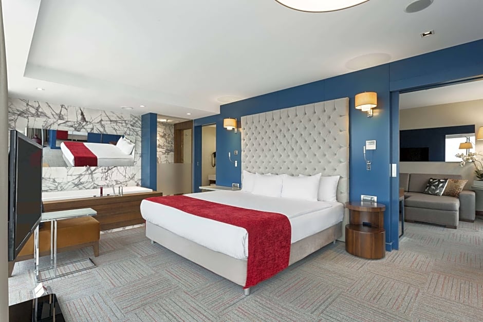 1 King Bed Corner Sea View Suite with sofa bed, flat screen TV and coffee maker